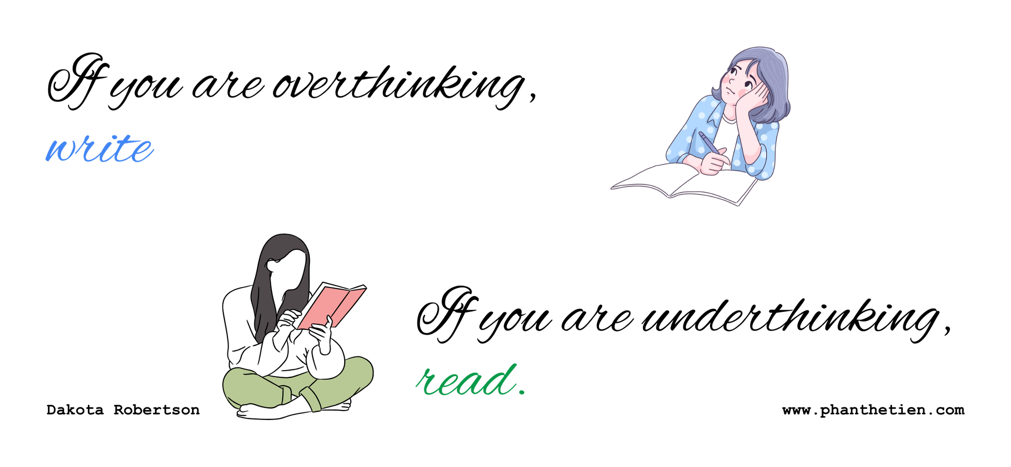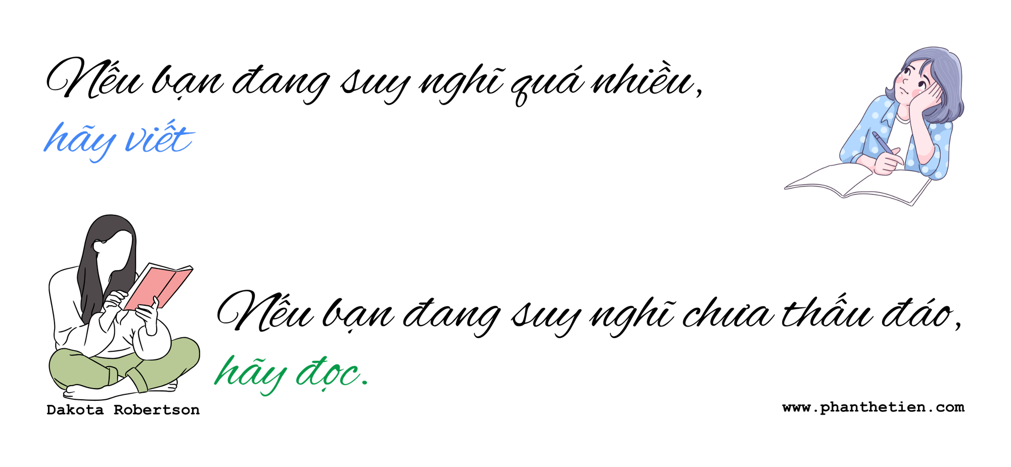 Tiến có thói quen trên, khi nghĩ nhiều và cần mạch lạc suy nghĩ, tôi viết; khi không có ý tưởng hoặc muốn tìm ý tưởng, tôi đọc.